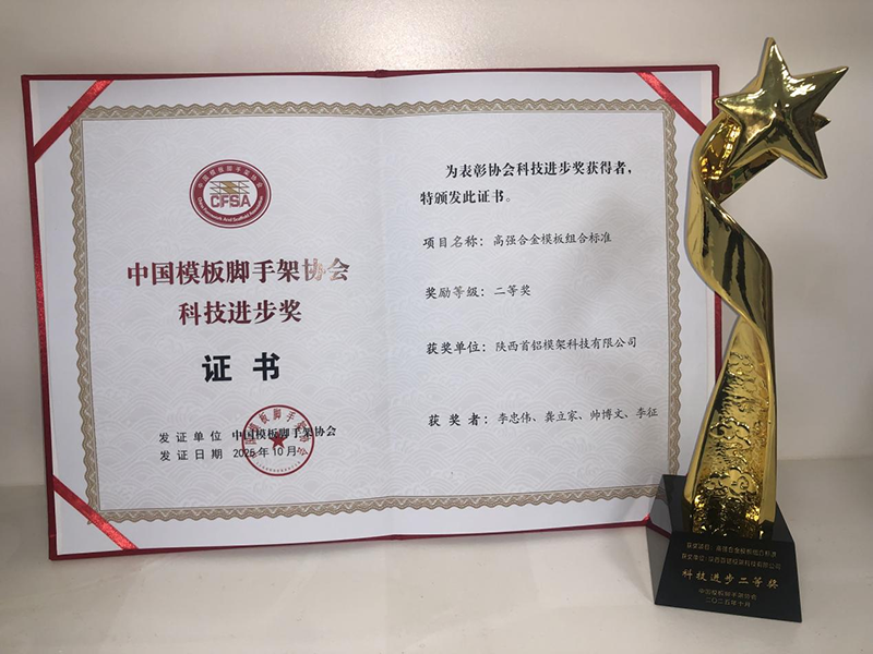 At the technological achievement commendation session, Shaanxi Shoulv Alu Formwork’s Combination Standards for High-Strength Alloy Formwork won the Second Prize for Technological Progress issued by the association, thanks to its outstanding innovation and application value. This honor not only reflects the industry’s recognition of Shoulv Alu Formwork’s technical strength but also highly affirms the company’s spirit of continuous innovation.